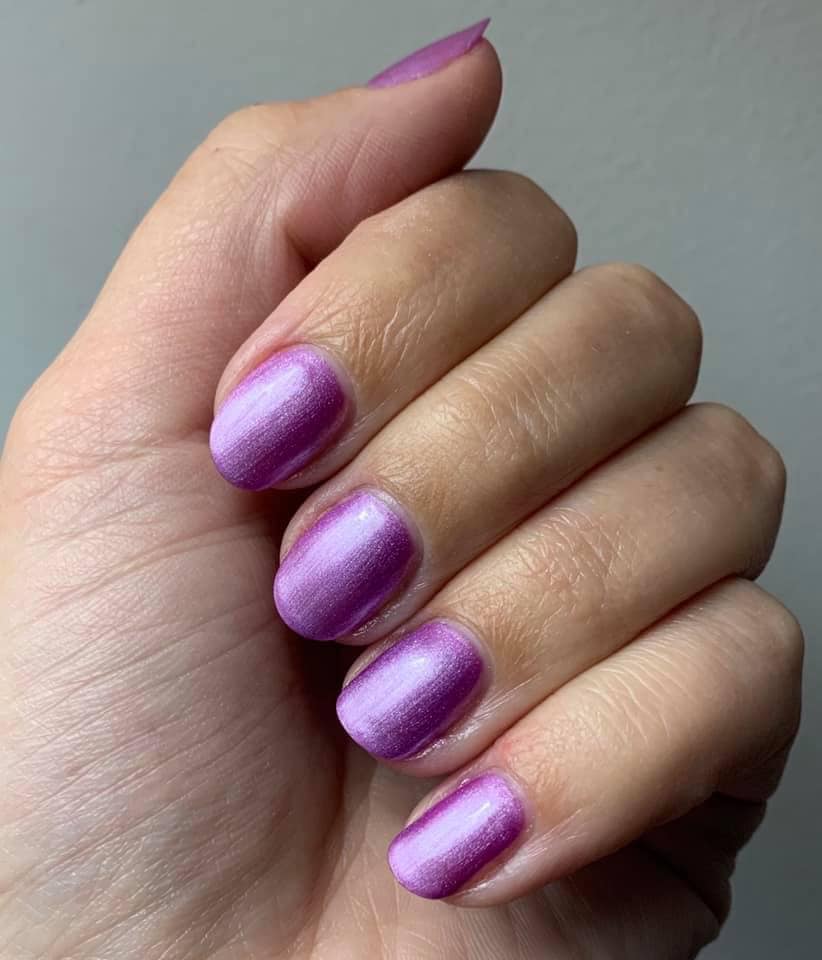 Purple. Light. Pearl finish. Opaque. Warm undertone.